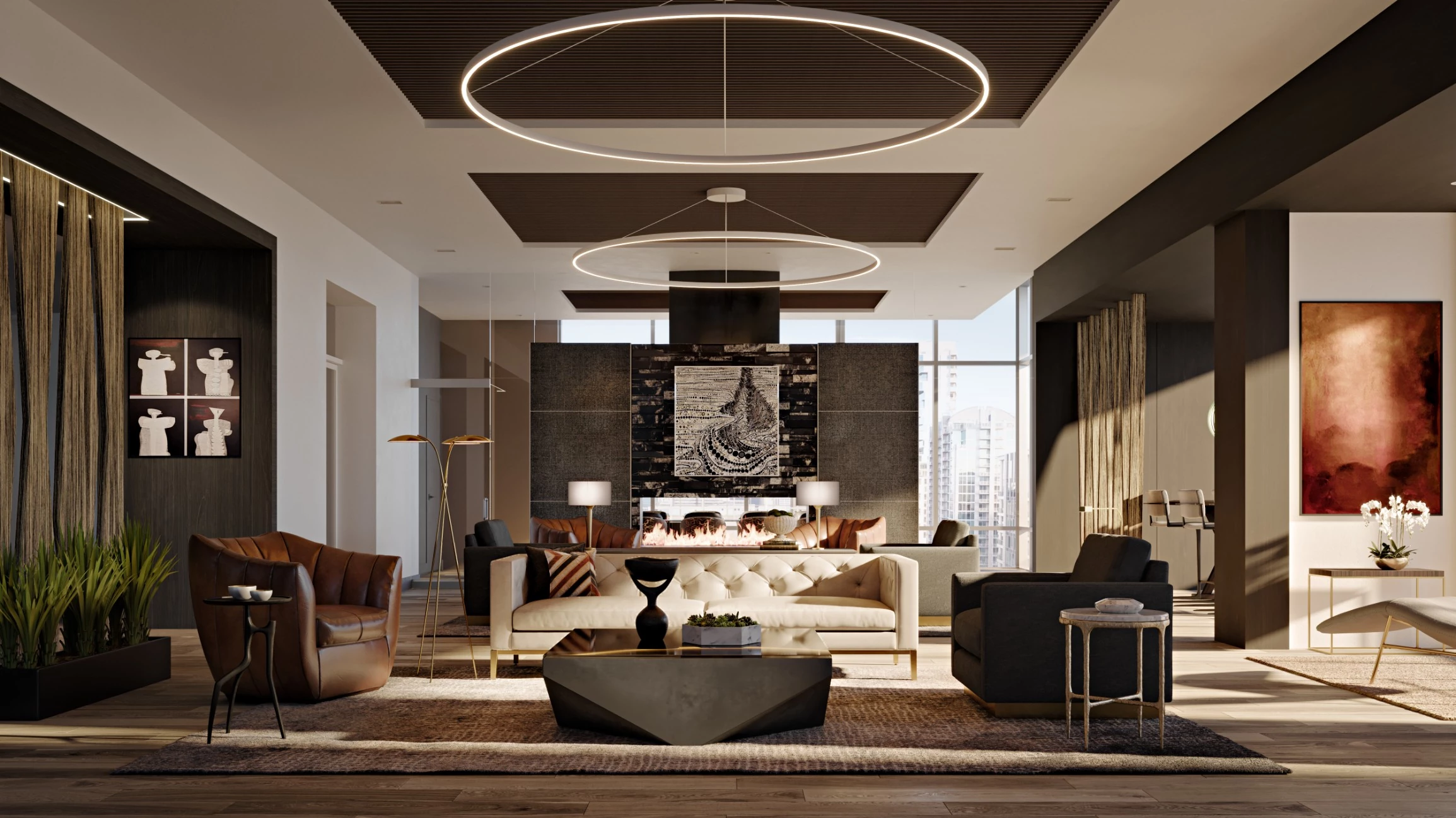 The exquisitely designed Residents' Observatory has been created to host everything from the most intimate discussions to vibrant group chats. Its flexible layout of several different areas allows residents to control the flow of the space to accommodate a variety of needs. Gather near the dual-sided fireplace or take a seat at The SKYLINE bar for an unforgettable evening.