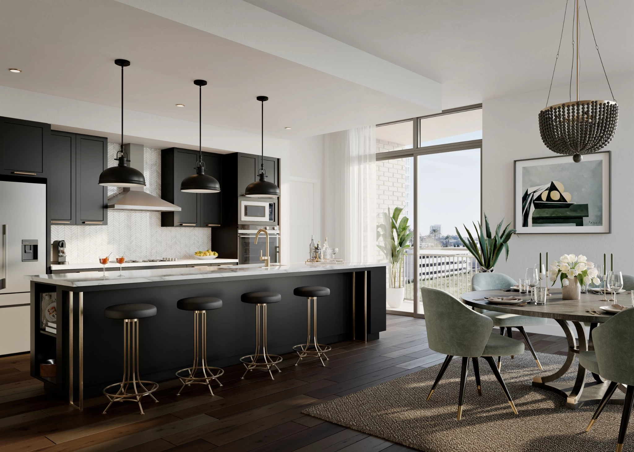 The SKYLINE bar and 360 Lounge are the centerpieces of the Penthouse level amenity floor. This indoor/outdoor gathering spot serves as the destination for libations meant for lounging, or the ideal place for a bit of evening mingling.