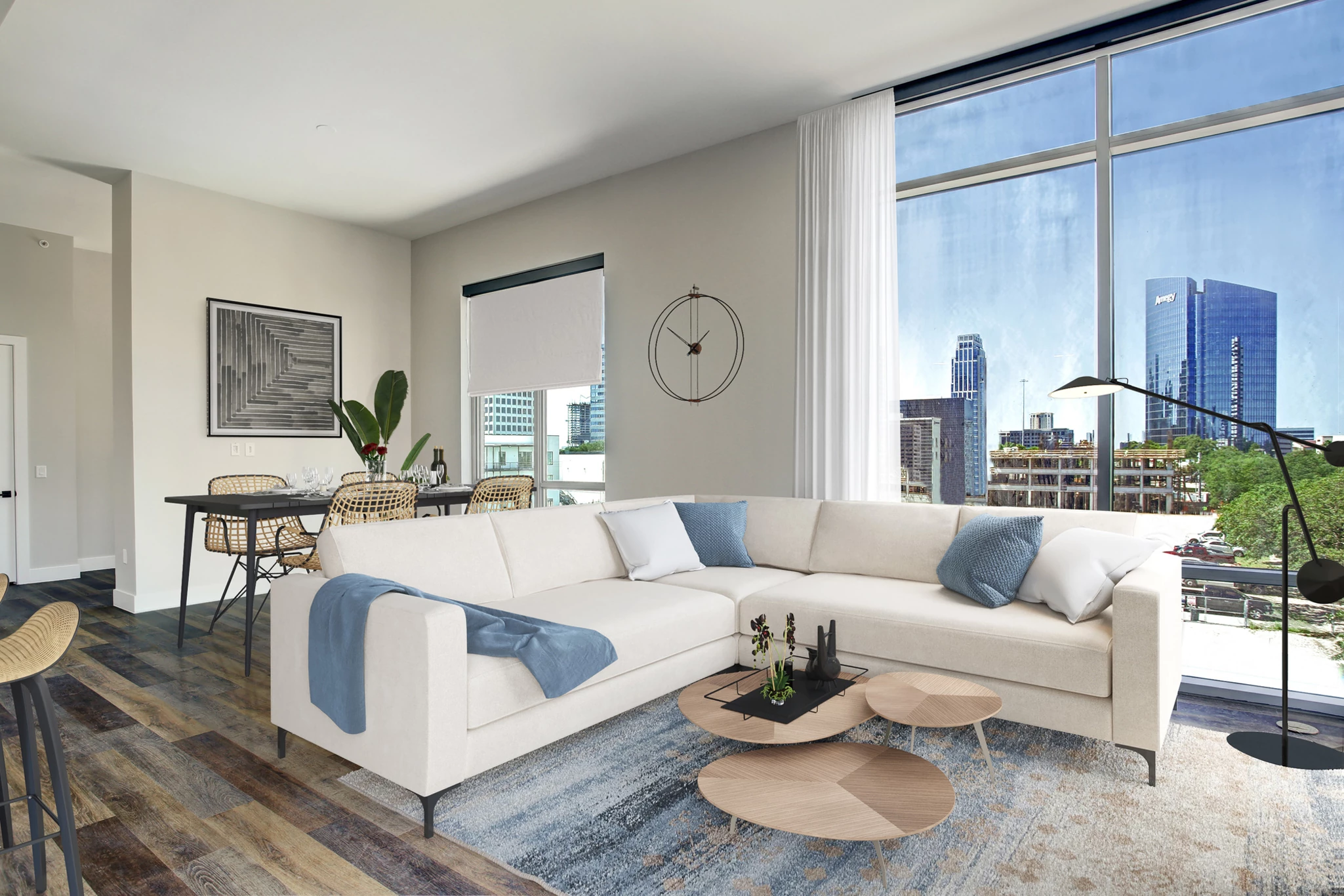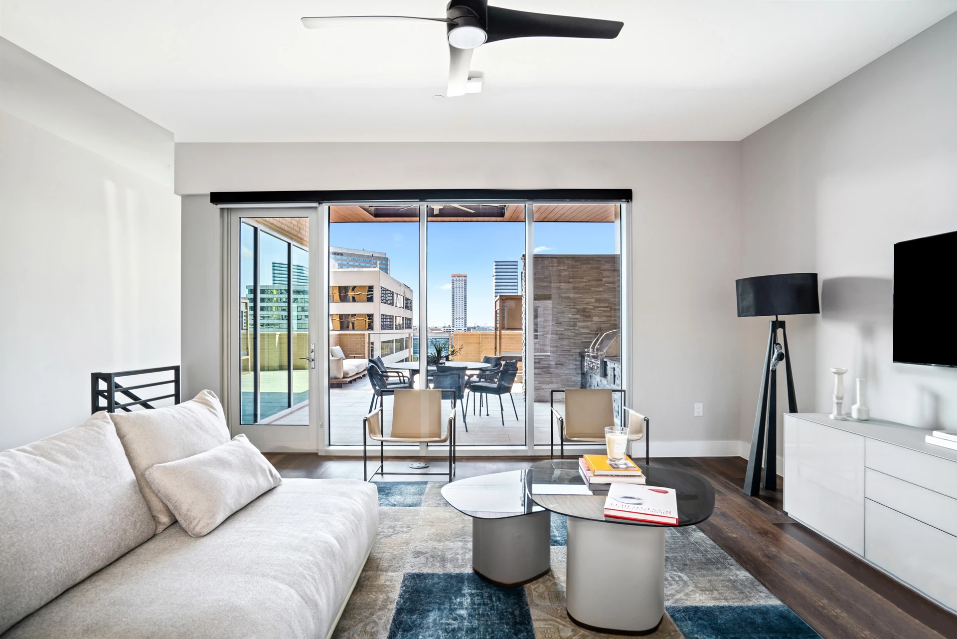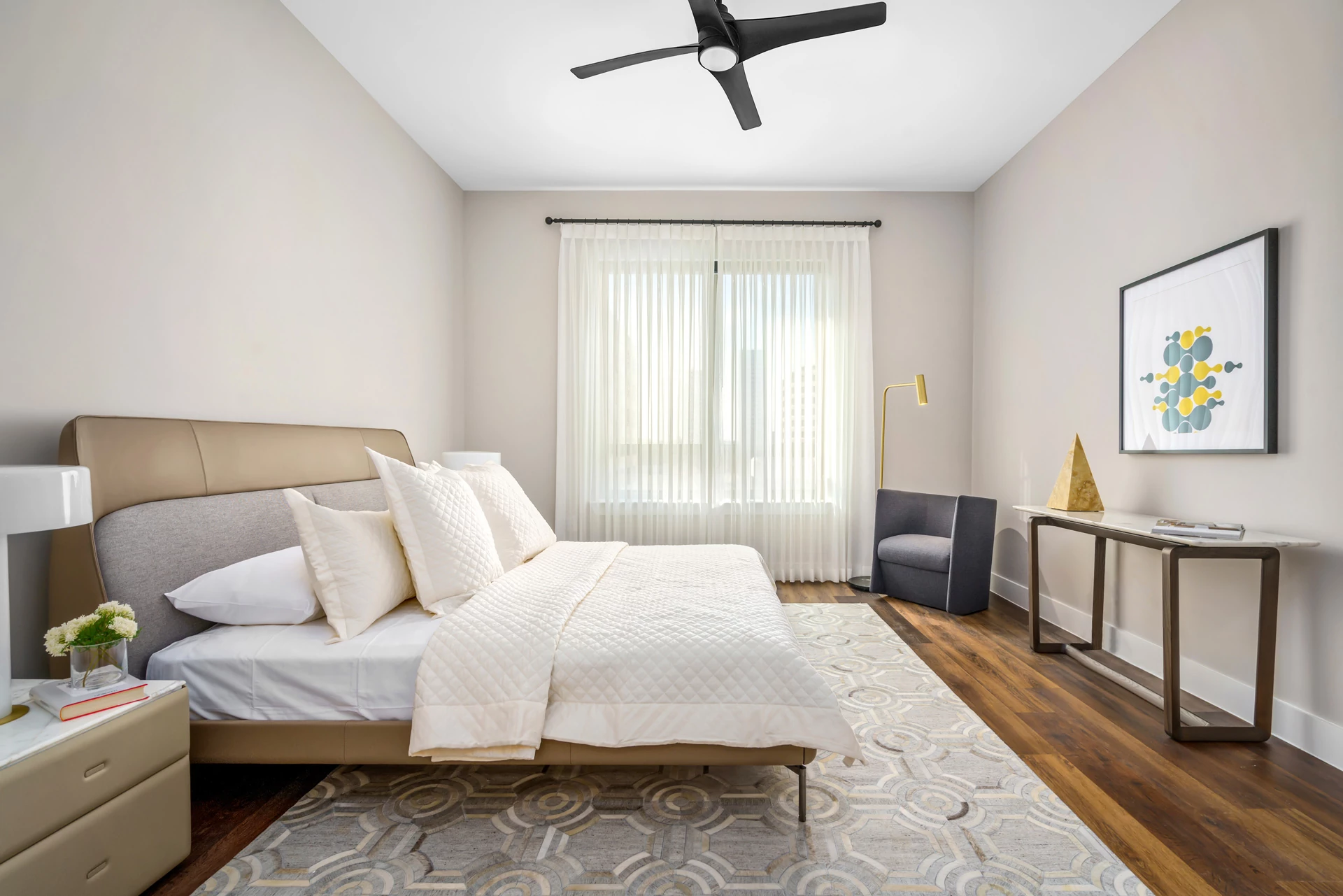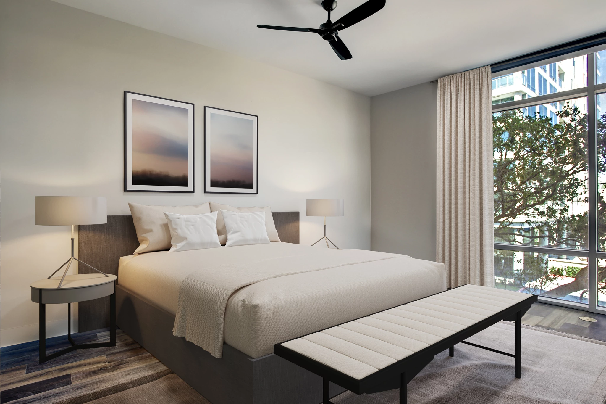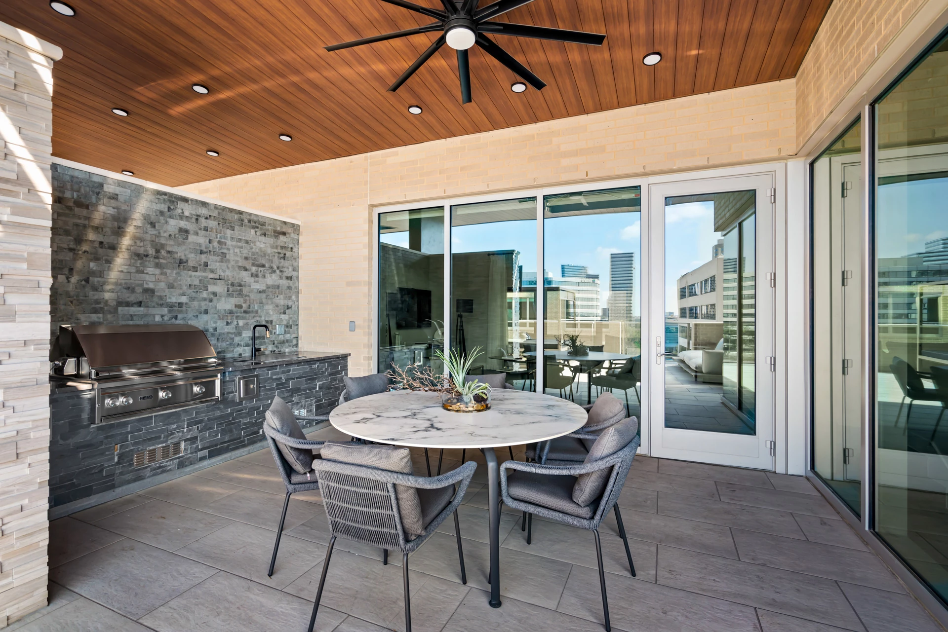 The Penthouses are exemplary of Crimson quality. These generously sized homes are enhanced with extended ceiling heights of 14’, an upgraded appliance package featuring Wolf and Fisher & Paykel, expanded smart home lighting controls, and scenic Galleria or Downtown skyline views.