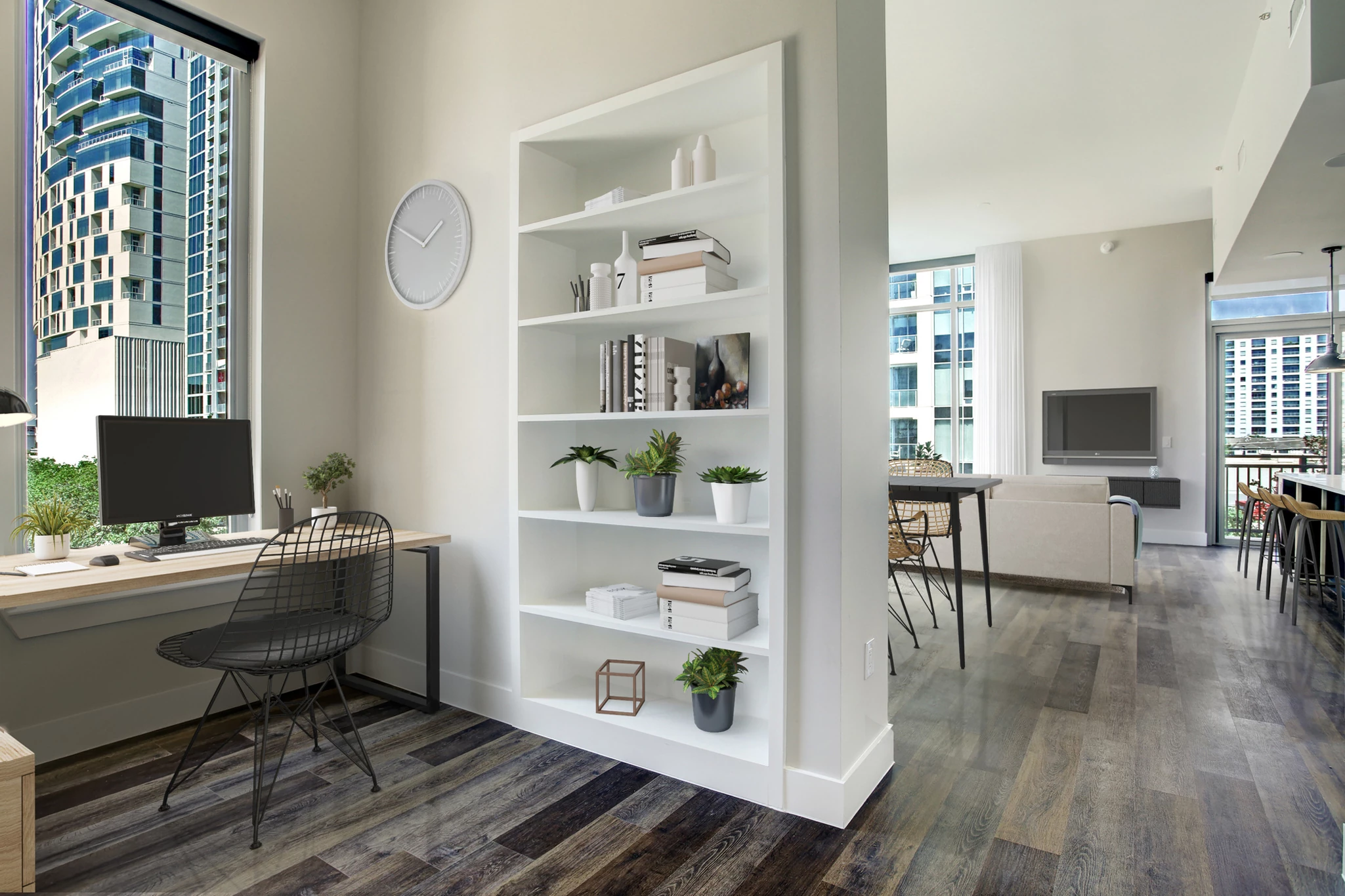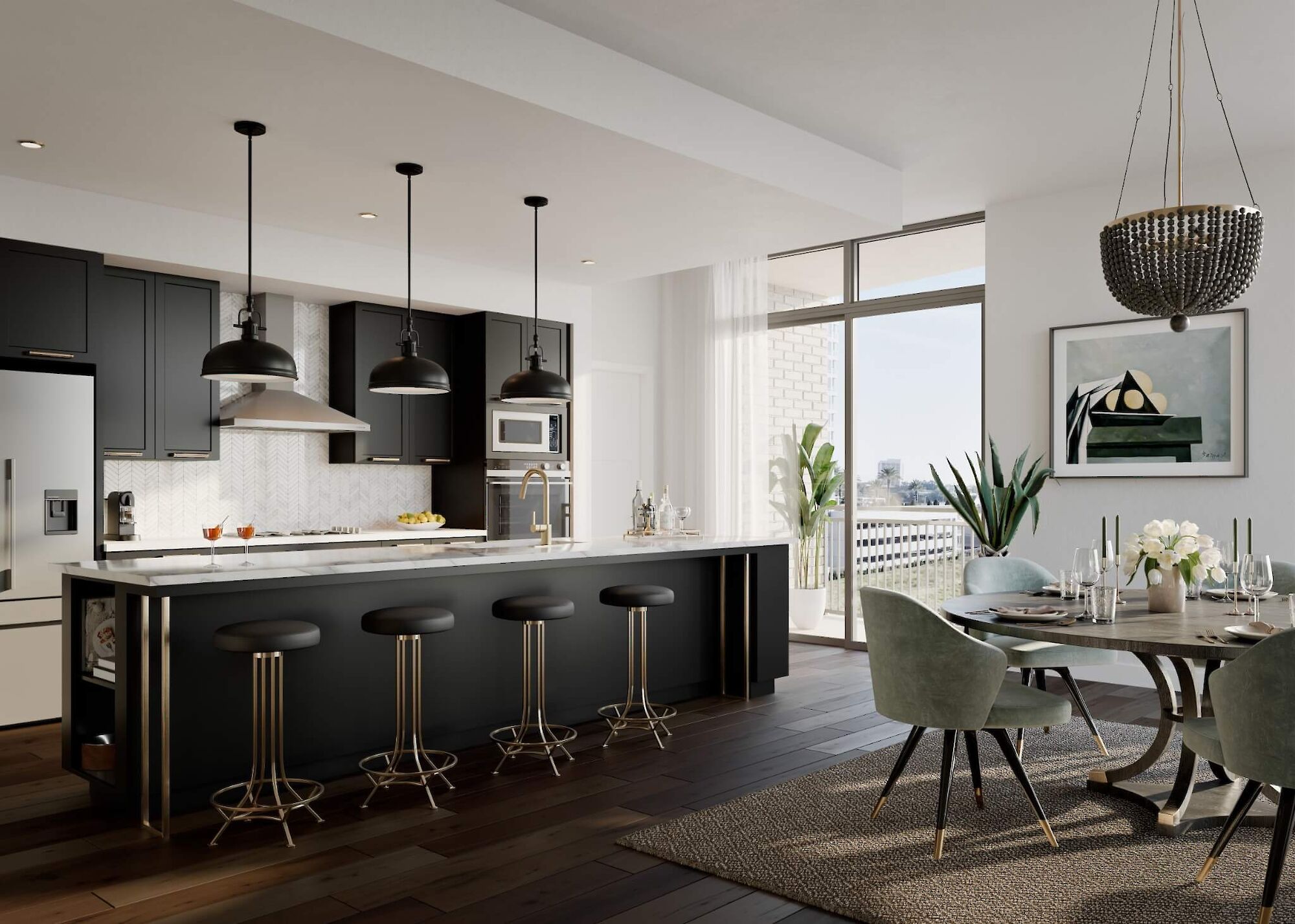 The most spacious homes in 1 to 3 bedroom layouts with 14’ ceilings, upgraded appliances, and two color palette options.